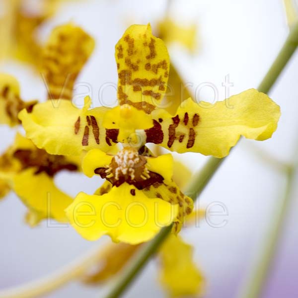 Description : Plante de belle taille arborant un feuillage vert clair sur des pseudobulbes allongés et aplatis. Hampe florale atteignant 1,20m, érigée puis arquée, ramifiée, portant une multitude de petites fleurs jaunes tigrées de brun acajou et mesurant 4 à 5cm. Floraison de longue durée, les fleurs s'épanouissant progressivement.