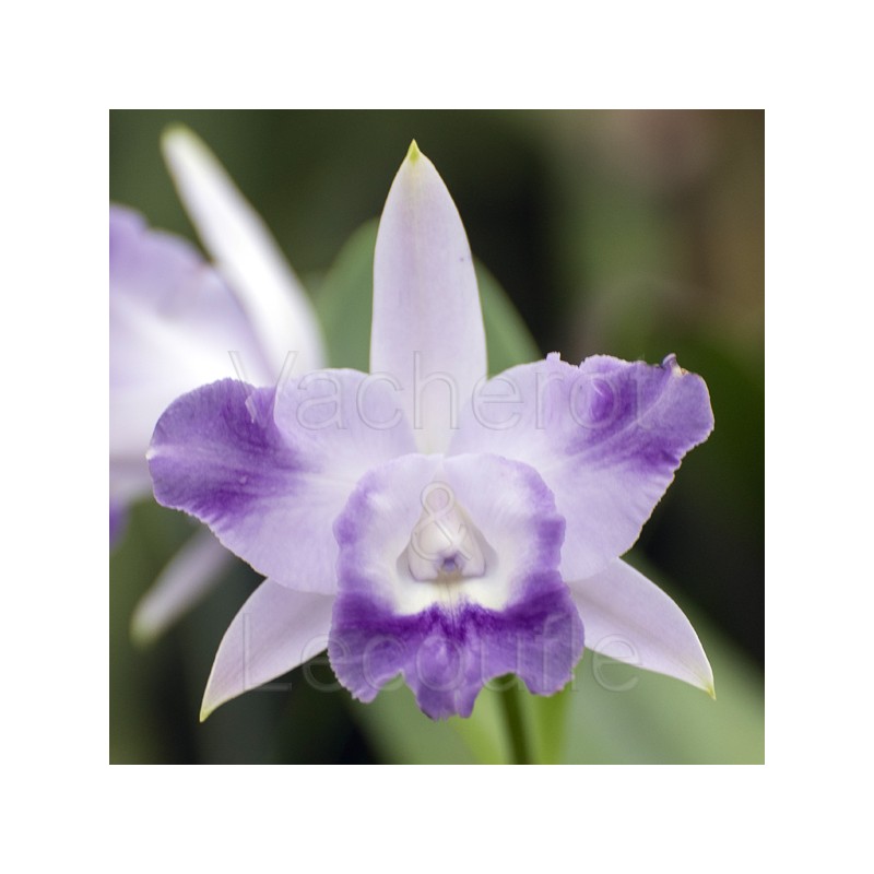 Fleurs de forme assez triangulaire d'une rare couleur mauve bleuté. Splashes et labelle plus soutenus. Hybride compact. Une couleur rare !