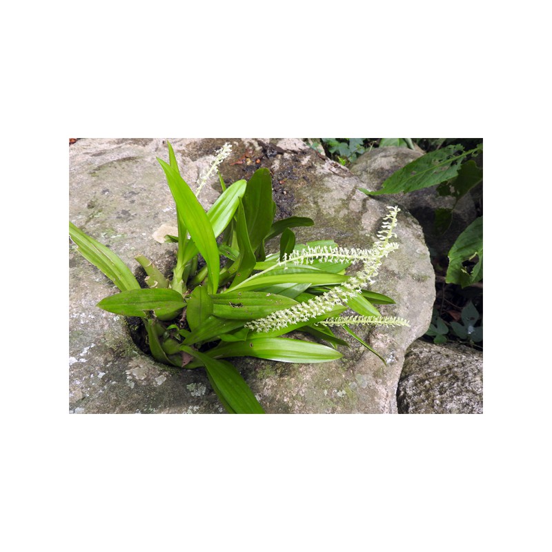 Plante très vigoureuse de 30cm à 40cm de haut environ présentant des pseudobulbes ovoïdes portant chacun deux feuilles. Hampes cylindriques en forme de rince-bouteille arqué de 20/25cm de long portant d'innombrables petites fleurs vertes.