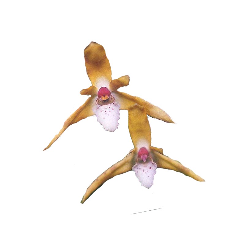 Fleurs solitaires et nombreuses de couleur brun/jaune au labelle blanc. Nombreuses hampes florales simultanées.