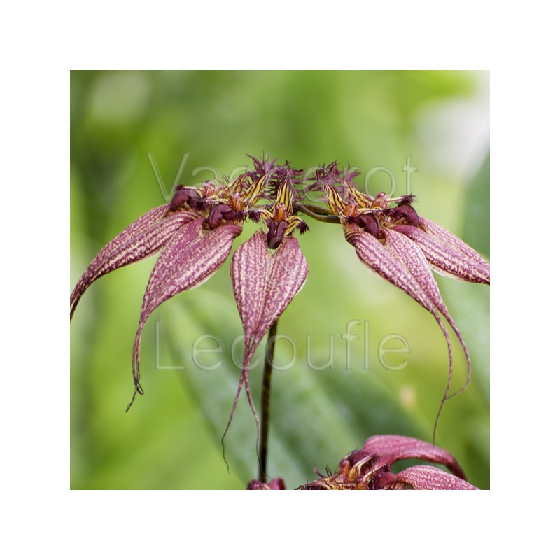 Hampe florale érigée portant de nombreuses fleurs de 17cm de long en forme de doigt, de teinte générale rouge, regroupées en parapluie. Espèce à la croissance vigoureuse produisant des pseudobulbes portant un feuille unique.