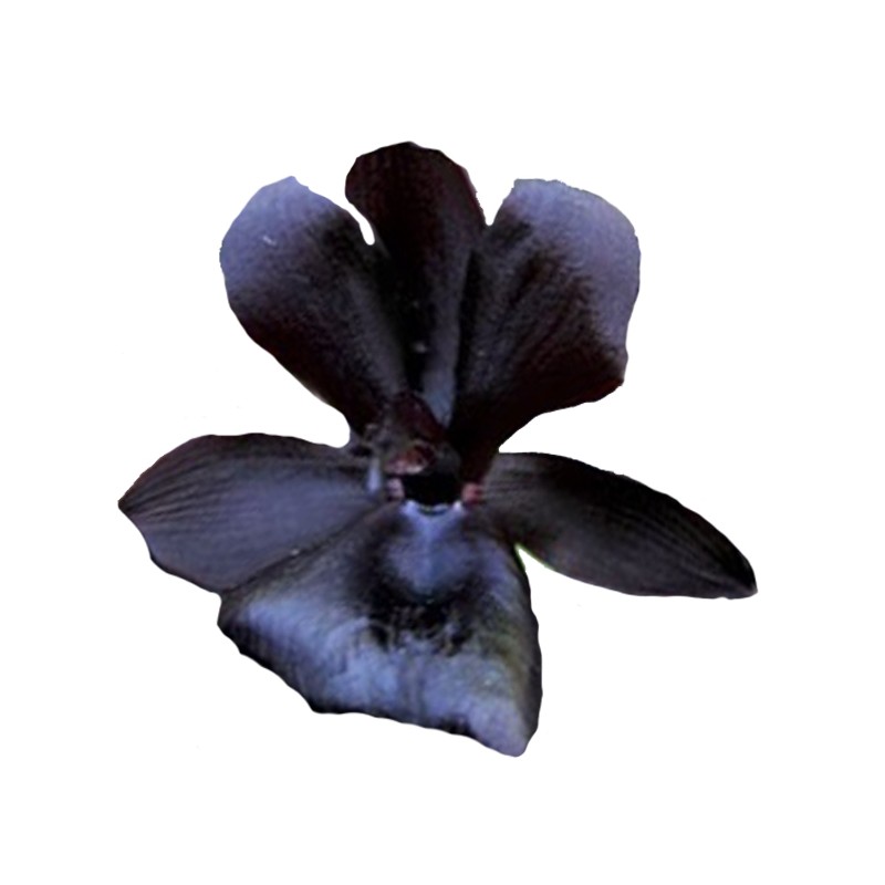 Probablement l'orchidée la plus proche du noir. Floraison prolifique en grappes de fleurs de 6cm d'un violet foncé presque noir. Parfum agréable.