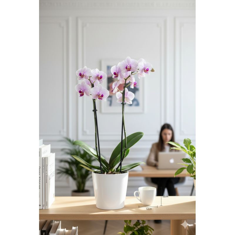 Orchidée livrée dans cache-pot. Photos non contractuelles.
