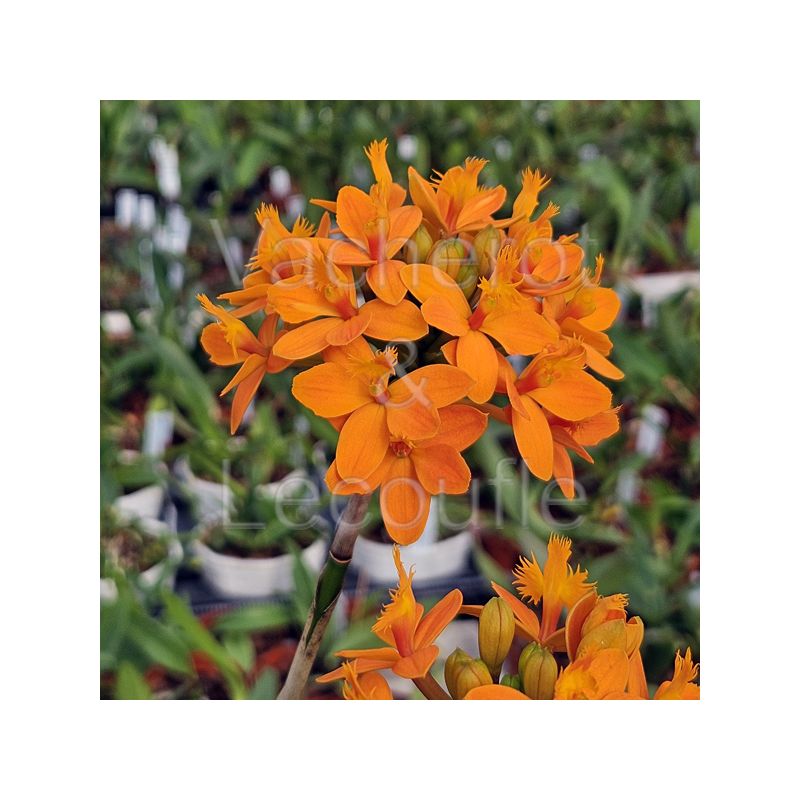 Orchidée dépourvue de pseudobulbes formant, avec l'âge, des touffes denses de tiges de 50/60cm de haut garnies sur toute leur longueur de petites feuilles coriaces. Hampe florale terminale de 20cm de haut portant un bouquet de nombreuses fleurs de 4cm de diamètre, de couleur orange vif.