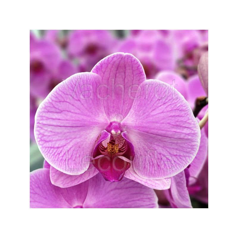 Hampes florales ramifiées portant de grandes fleurs roses striées de rose plous soutenu. Labelle fuschia contrastant avec le reste de la fleur.