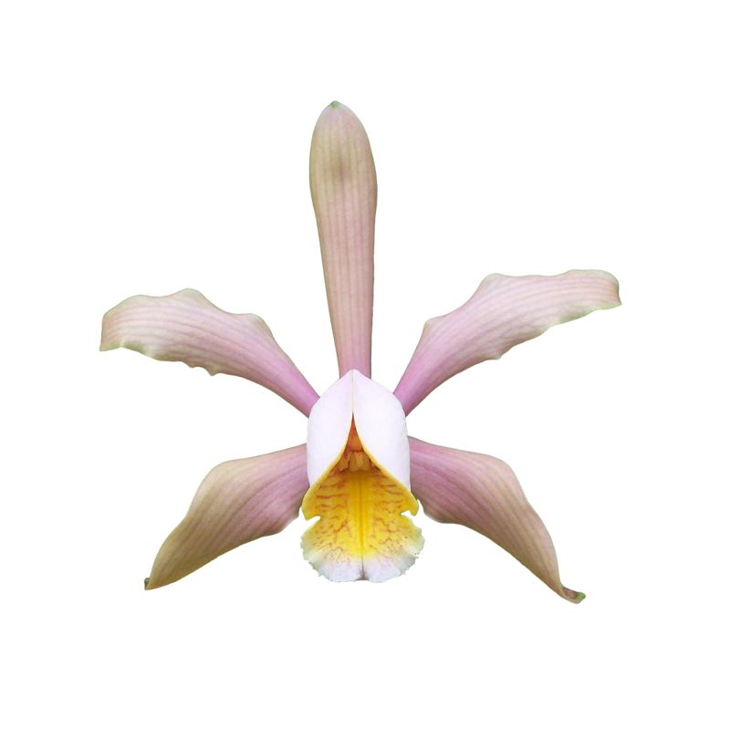 Belle espèce endémique de la côte est du Brésil. Sélection aux fleurs bronze largement teintées de rose. Labelle blanc sur l'extérieur et jaune orangé à l'intérieur.