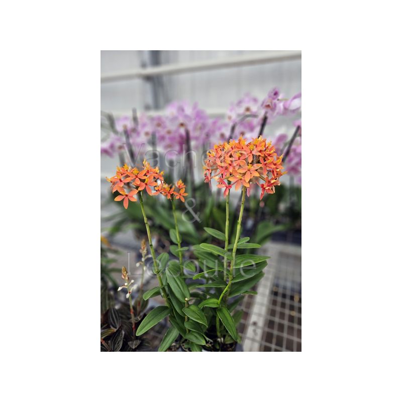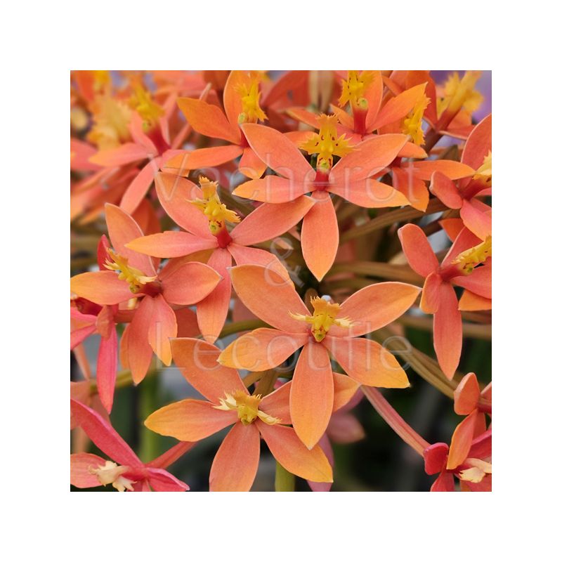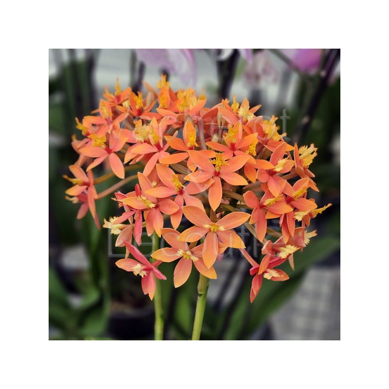 Orchidée dépourvue de pseudobulbes formant, avec l'âge, des touffes denses de tiges de 60cm de haut garnies sur toute leur longueur de petites feuilles coriaces. Hampe florale terminale de 20cm de haut portant un bouquet de nombreuses fleurs de 4cm de diamètre, de couleur orange légèrement teinté de rose.