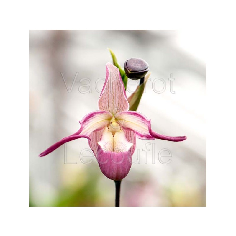 Belle plante sans pseudobulbe au feuillage rubané abondant, ressemblant à un Paphiopedium géant à feuilles longues. Forme assez rapidement des touffes importantes composées de nombreuses pousses étroitement serrées les unes contre les autres. Grande hampe portant 3 à 5 fleurs successives de 8cm. Sépales blancs rosés veinés de rose et de vert. Pétales latéraux blanc rosés bordés de rose. Labelle rose.