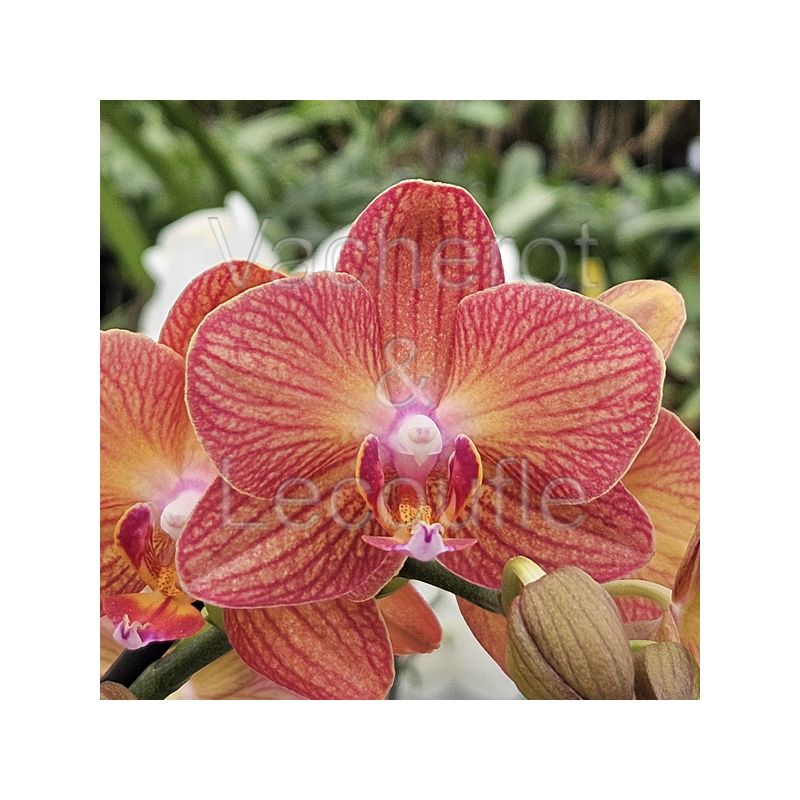 Hampes ramifiées portant des fleurs aux chaudes teintes orangées discrètement striées de rose foncé. Variété aux couleurs saisissantes.