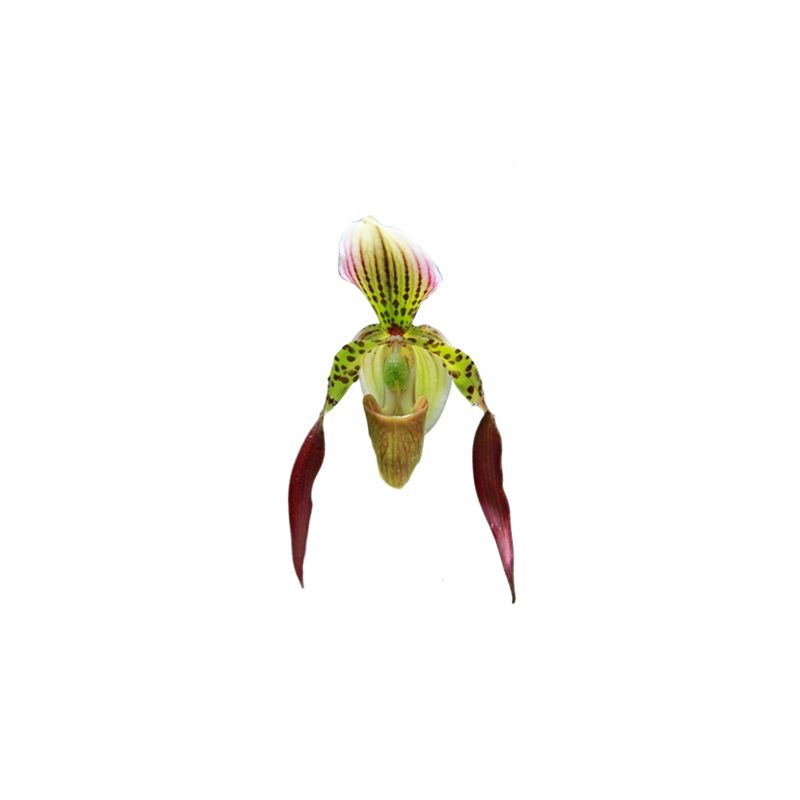 Hybride multifloral comme ses parents. Grandes fleurs à la coloration proche de Paph. haynaldianum mais avec les pétales latéraux longs et retombants comme Paph. philipinense. Ce dernier réduit également un peu la taille de la plante qui est légèrement plus compacte que chez Paph. haynaldianum.