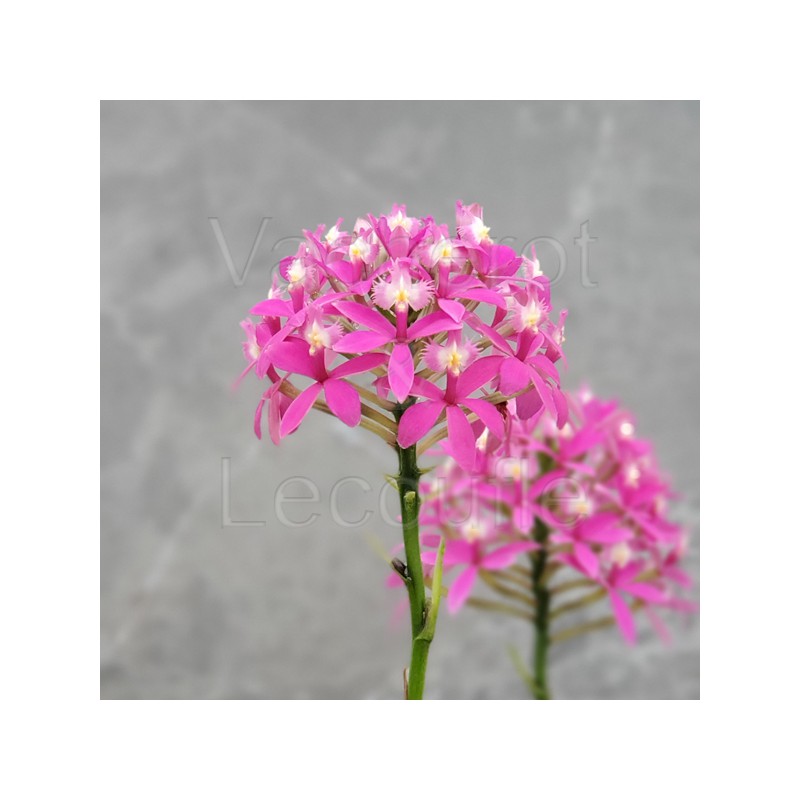 Orchidée dépourvue de pseudobulbes formant, avec l'âge, des touffes denses de tiges de 80cm de haut garnies sur toute leur longueur de petites feuilles coriaces. Hampe florale terminale de 20cm de haut portant un bouquet de nombreuses fleurs fuschia de 5cm de diamètre.