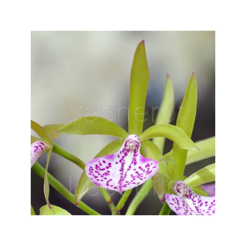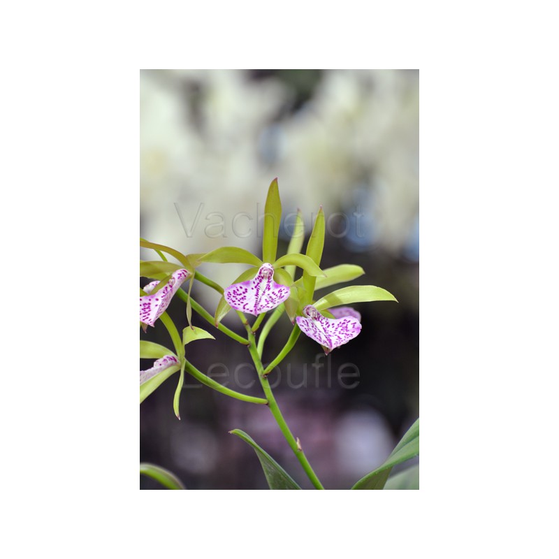 Orchidée compacte et vigoureuse portant de nombreux bouquets de fleurs étoilées rose mauve mouchetées de grenat. Hybride vigoureux.